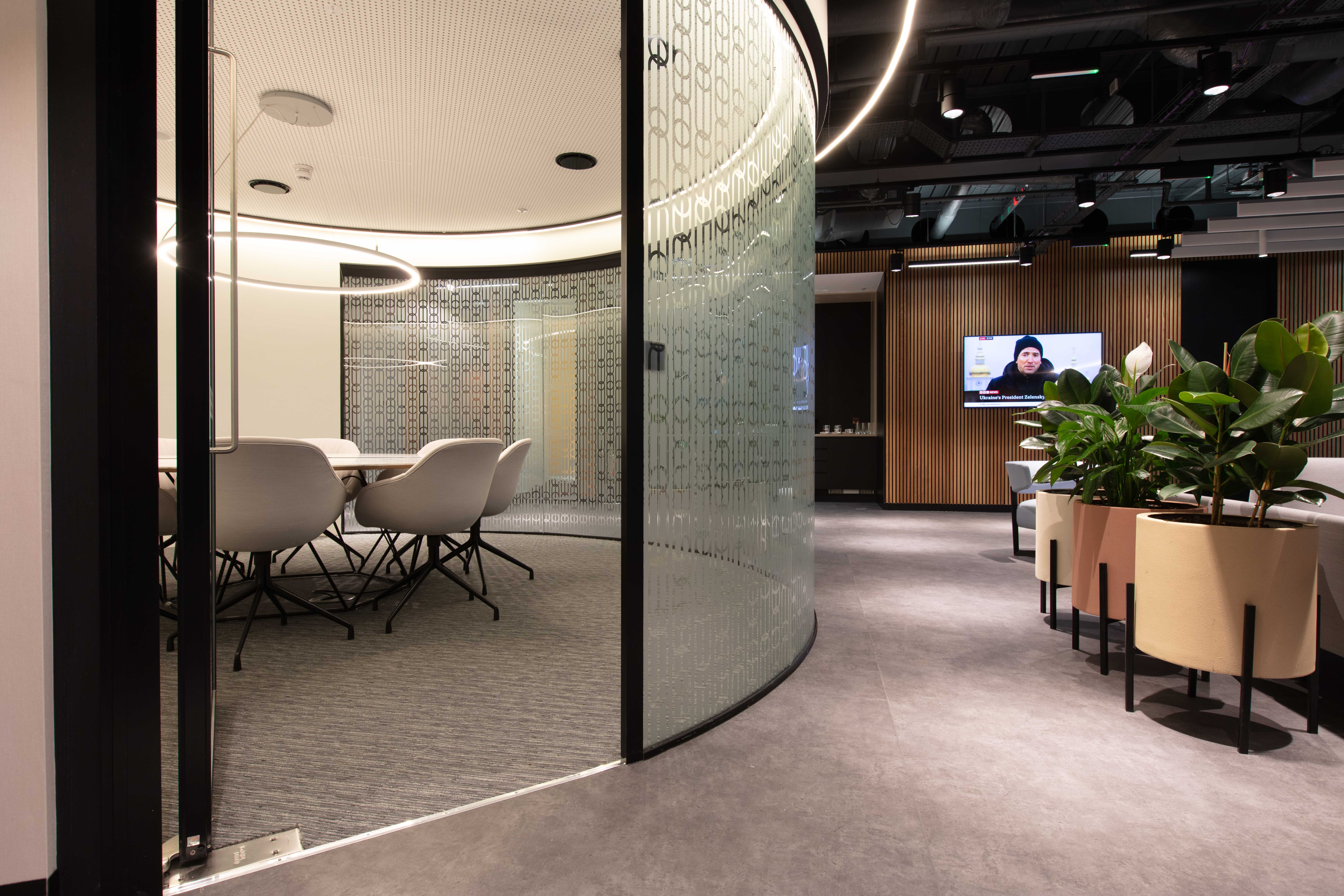Form DC specified a curved Optima 117 Plus screen for the distinctive meeting room. This showcases Optima’s capability to engineer complex partitions that elevate a space. The curved glass – finished with a patterned manifestation that nods to Charles Rennie Mackintosh’s Glasgow style – softens the architecture and adds local character.