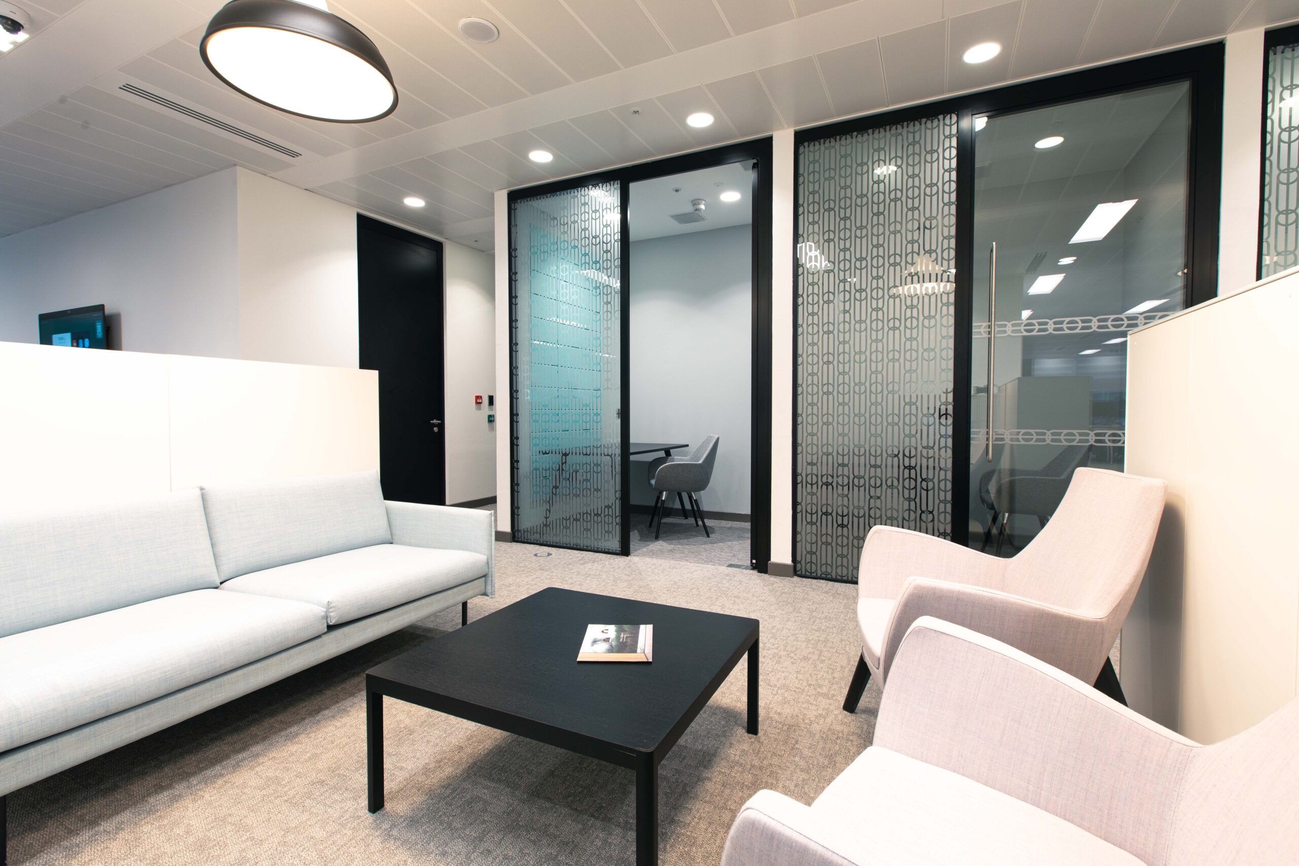 To balance openness with privacy, Form DC specified Revolution 100 double-glazed partitions with Edge Symmetry double-glazed doors for meeting rooms and quiet spaces. The system delivers high acoustic performance suited to a busy office while maintaining daylight and sightlines, minimising distractions.